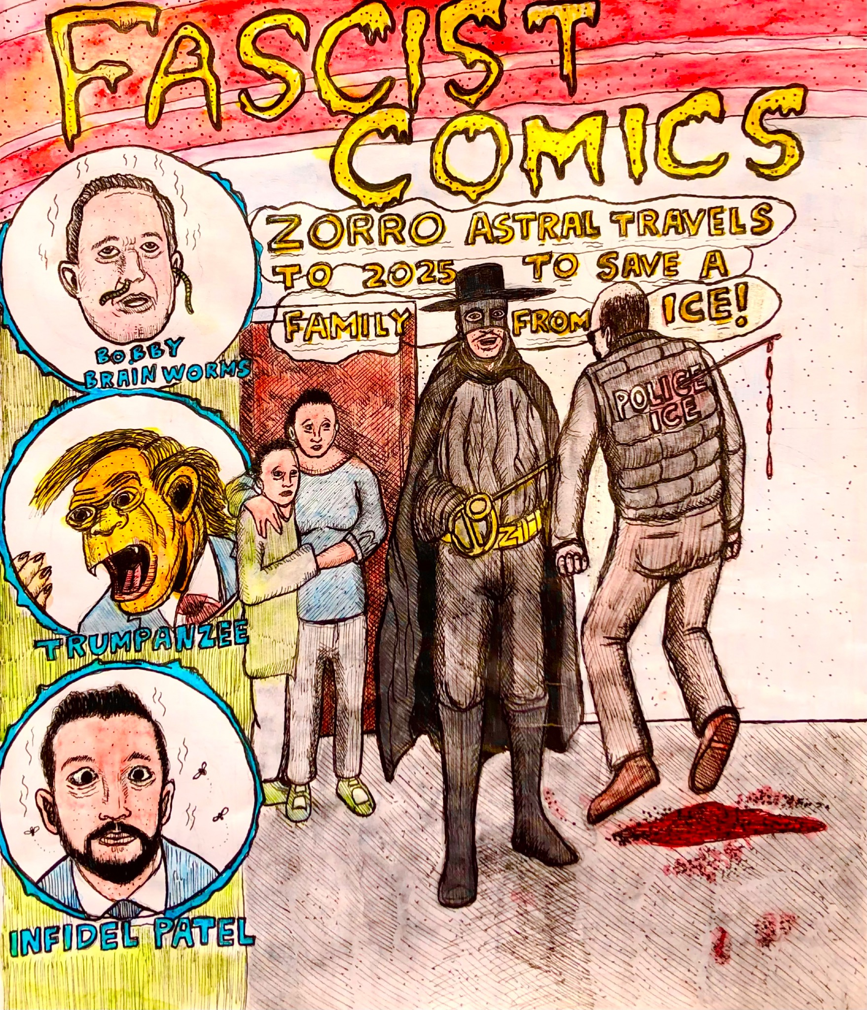 Honestly, I’m a huge fanatic of R Crumb, Raymond Pettibon, Basquiat and Sam Kieth, so naturally I like cartoons. That and fine art paintings. I love going to see art and I have also worked for Dale Chihuly’s exhibition in Seattle, Washington for 3 years. I’ve been drawing since I was 6 years old or so.