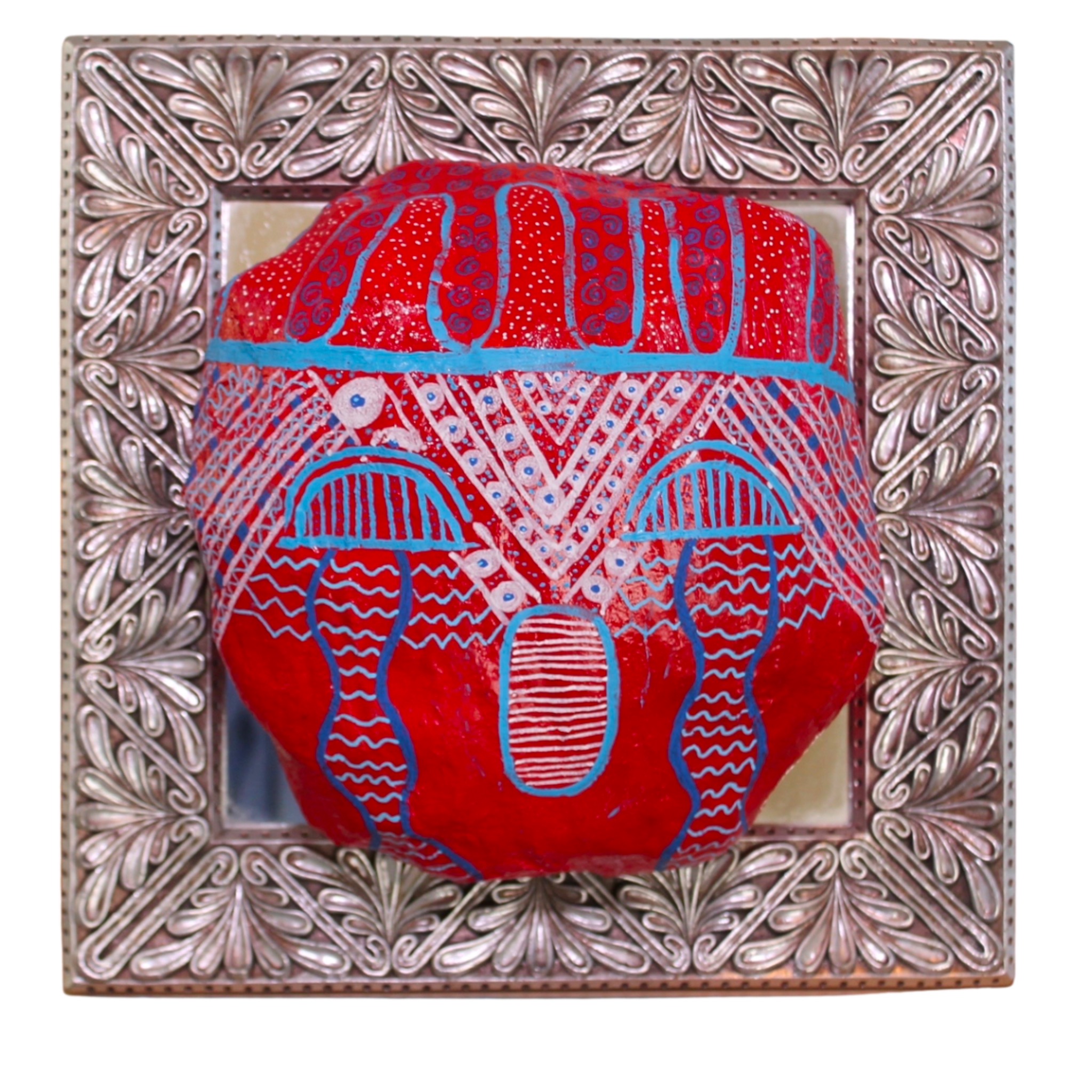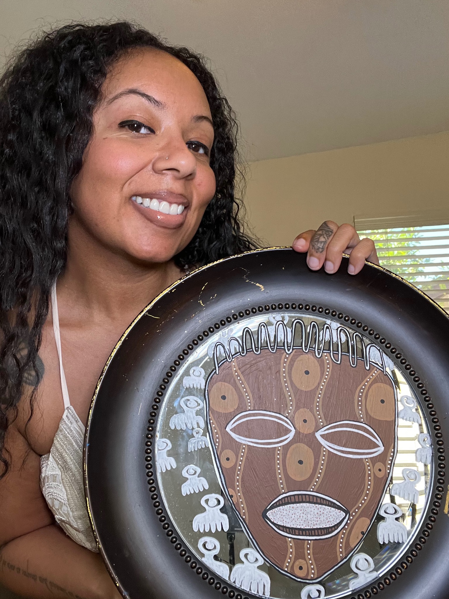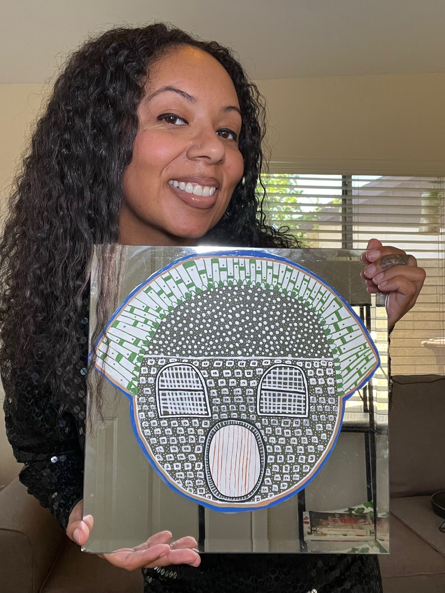 I believe in finding the art in broken things. Painting on secondhand mirrors & using other reclaimed materials is my favorite way to create. It allows the viewer to literally see themselves within the art & to contemplate how what others may discard, can still be useful. My art often includes masks, which allows the viewer to think about the masks we often wear in the world, intentionally or unintentionally. The viewer is able to think about how others see us, as well as how we see ourselves.