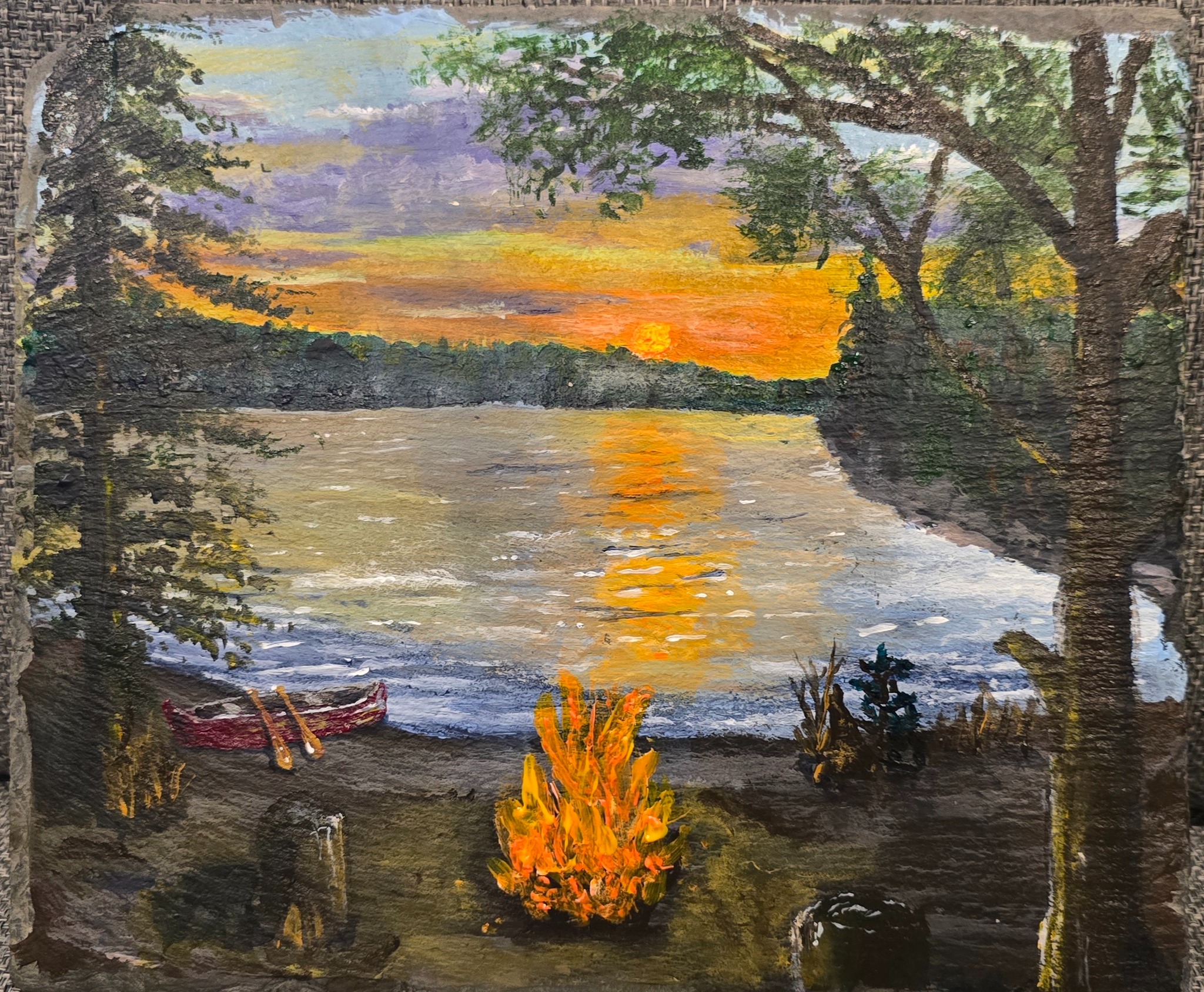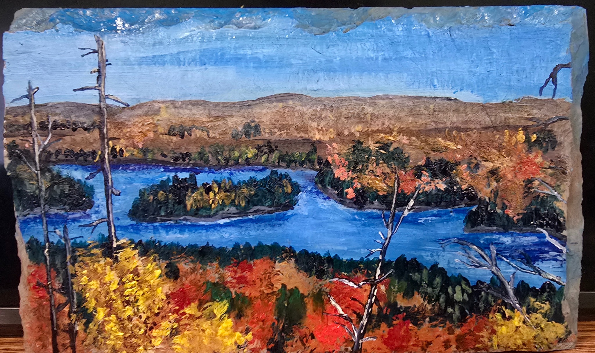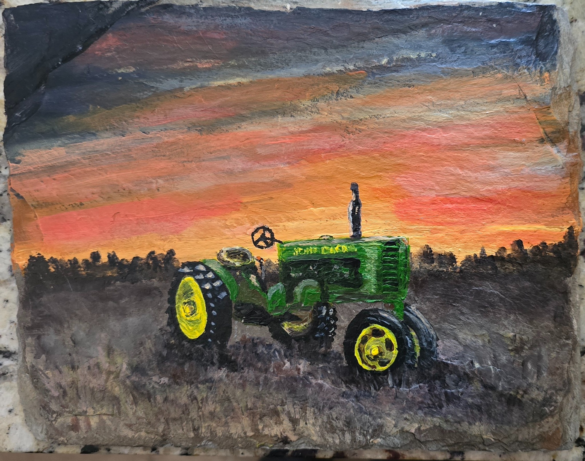 Currently my favorite is acrylic on slate, I like to relay a sense of nostalgia, a sense of home.