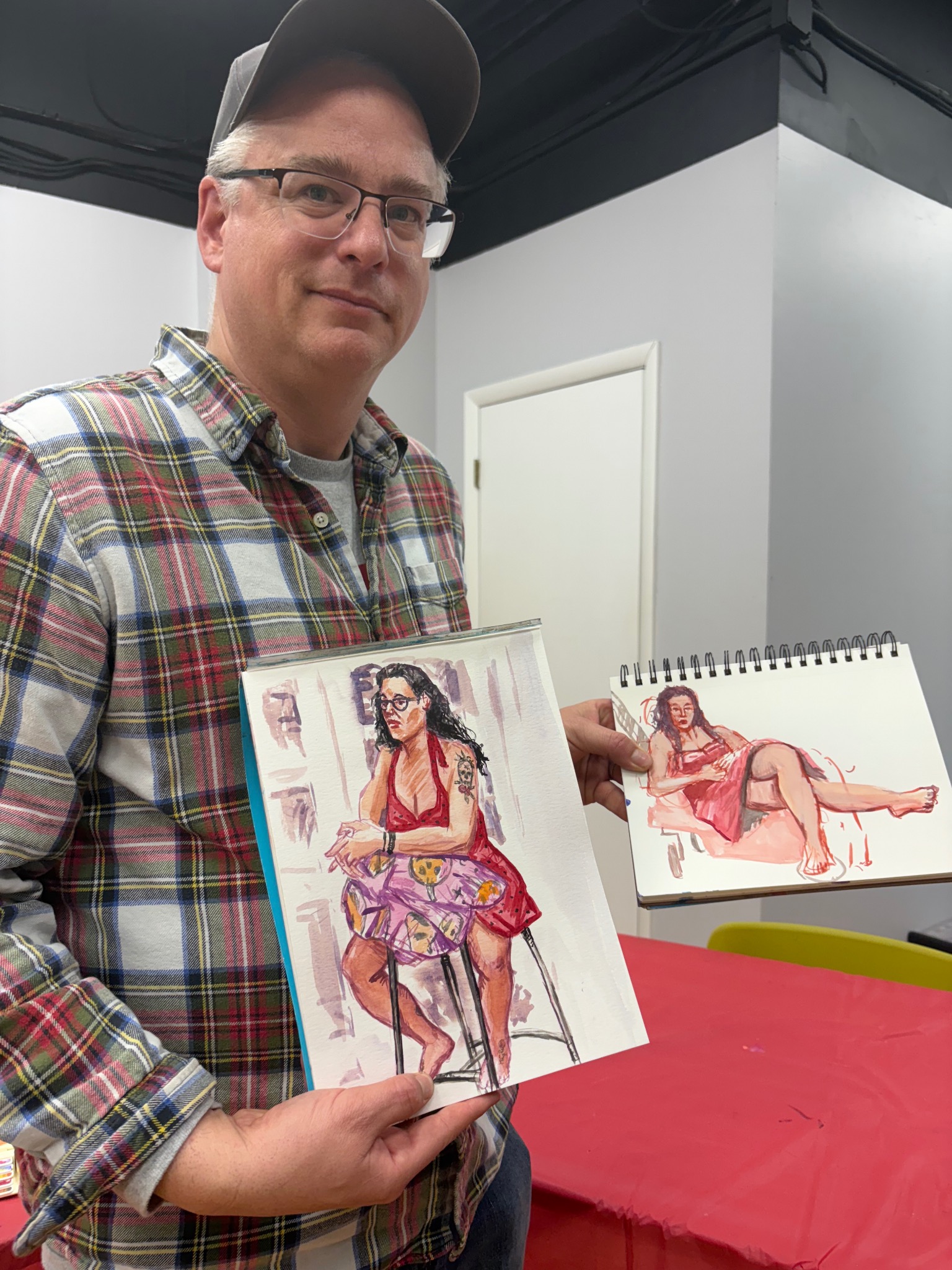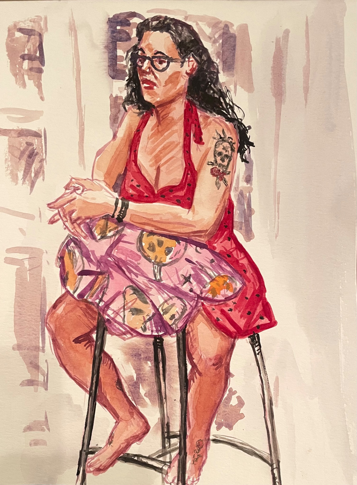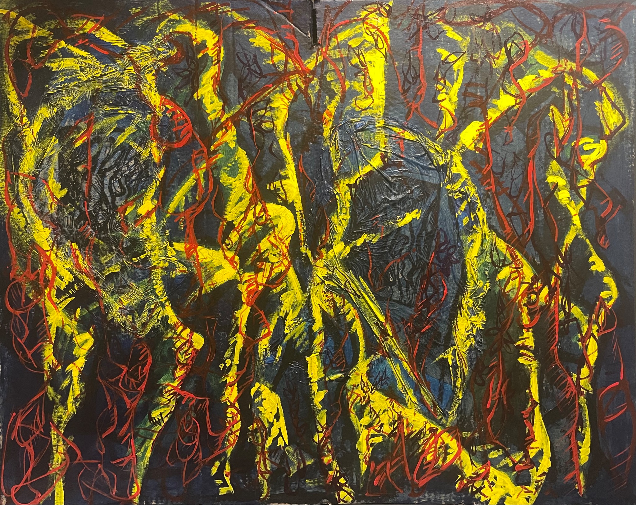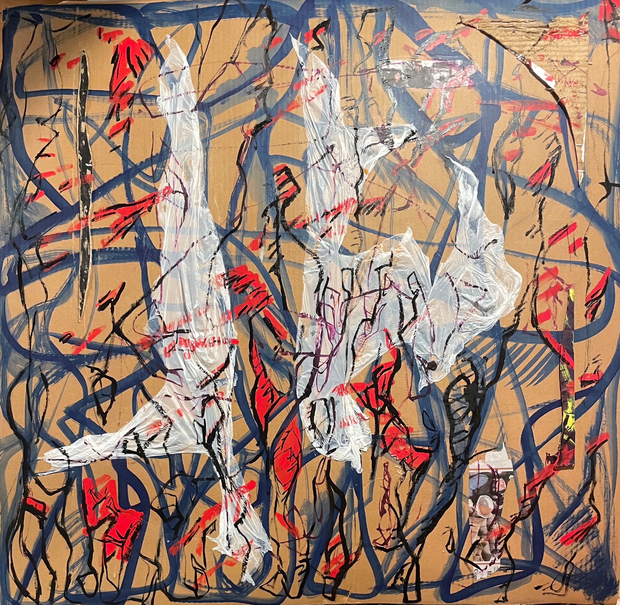 Hand made painting and drawing where the individual marks I make come through. Figuration and Abstraction interplay in my pieces and I lose myself in the process.